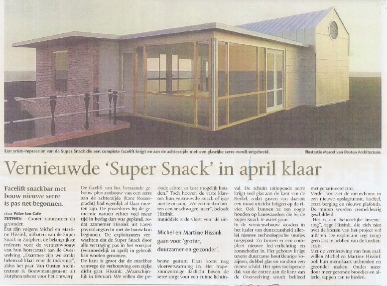 Michel and Martine Hissink own this snack bar, called Supersnack, in the center of Zutphen. The snack bar has been completely renovated and expanded such that it fits well in the historical city center. The result is a modern and attractive snack bar with a fresh look.