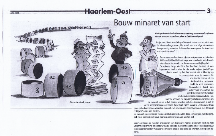 The minaret in Haarlem Oost is a mosque with a minaret that is 35 meters high. The mosque is located in Haarlem and is a place of worship for the Muslim community.